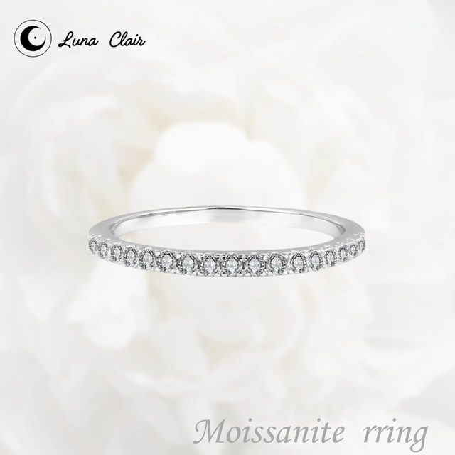 ★洗練されたシンプルデザインで指先を美しく演出 このモアサナイトリングは、シンプルながらも洗練されたデザインが特徴。 華奢なリングが指を長く美しく見せてくれ、どんなシーンでも上品な印象を演出します ★モアサナイトの魅力!ダイヤモンドに匹敵する輝き モアサナイトは、ダイヤモンドよりも輝きが強いとも言われる宝石。 ダイヤモンドに近い硬度を持ちながらリーズナブルな価格で楽しめます。 ★どのシーンにもピッタリの万能リング シンプルなデザインだからこそ、日常使いはもちろん、特別な日のコーディネートにも相性抜群。 単体でシンプルに楽しむのはもちろん、他のリングと重ね付けして自分らしいスタイルを楽しむこともできます。 【商品詳細】 素材:S925(ロジウムコーティング加工) メインストーン:モアサナイト約2mm×17石 指輪サイズ:7号〜9号、11号~19号 ※リングサイズは若干の誤差(0.1mm~0.7mm程度)が生じる場合がございます。 ギフトボックスに入れてお届けします。 【ご注文に関するご案内】 ご注文後に職人が一点ずつ丁寧に仕上げるため、発送まで約14日〜21日ほど頂戴しております。 受注生産の状況、配送状況によってお時間を頂く場合や、早まる場合がございます。 ※進捗状況については、随時ご連絡させていただきますので、安心してお待ちいただけますと幸いです。 手作業でひとつひとつ丁寧に仕上げているため、わずかに個体差が生じる場合がございます。 それも含めて、手作りならではの温もりや味わいを楽しみにしていただければ幸いです。 【ご注文内容の変更・キャンセルについて】 当店の商品は、ご注文をお受けしてから、職人が丁寧にお作りする【受注生産】とさせていただいております。 そのため、誠に恐れ入りますが、ご注文確定後の内容変更およびキャンセルは原則として承っておりません。 万が一ご注文内容に誤りがあった場合や、ご事情がある場合には、可能な範囲でご対応させて頂きます。その際は、お手数ですがお早めにご連絡を頂けますと幸いです。 お客様にご満足していただけるよう、心を込めて対応させていただきますので、ご不明な点などございましたら、どうぞお気軽にお問い合わせください。