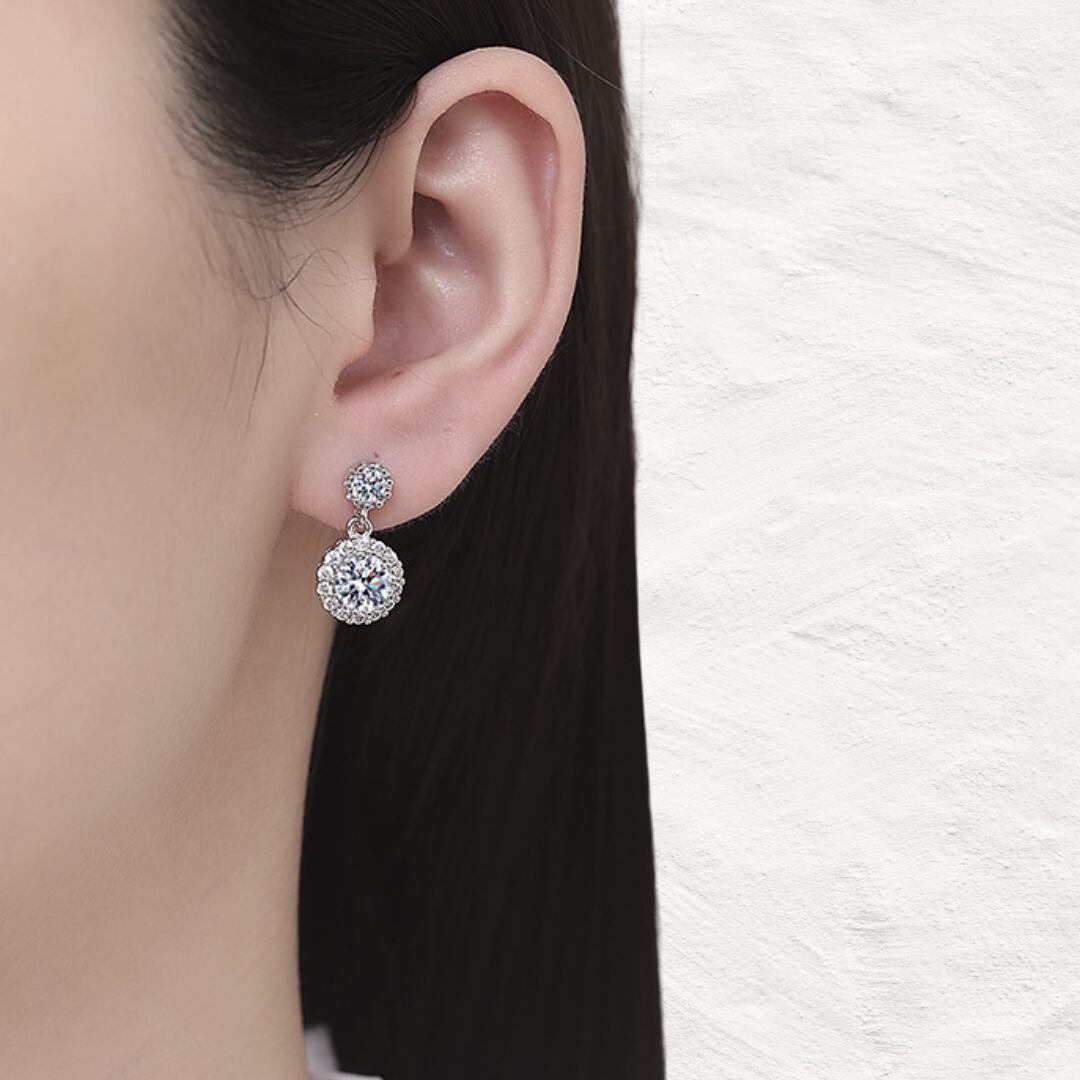 ピアスの上部と下部、両方にモアサナイトをあしらったダブルハローデザイン。