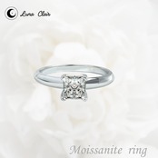 約5.5mm×5.5mmのプリンセスカットモアサナイトが、シャープで洗練された印象を演出します。