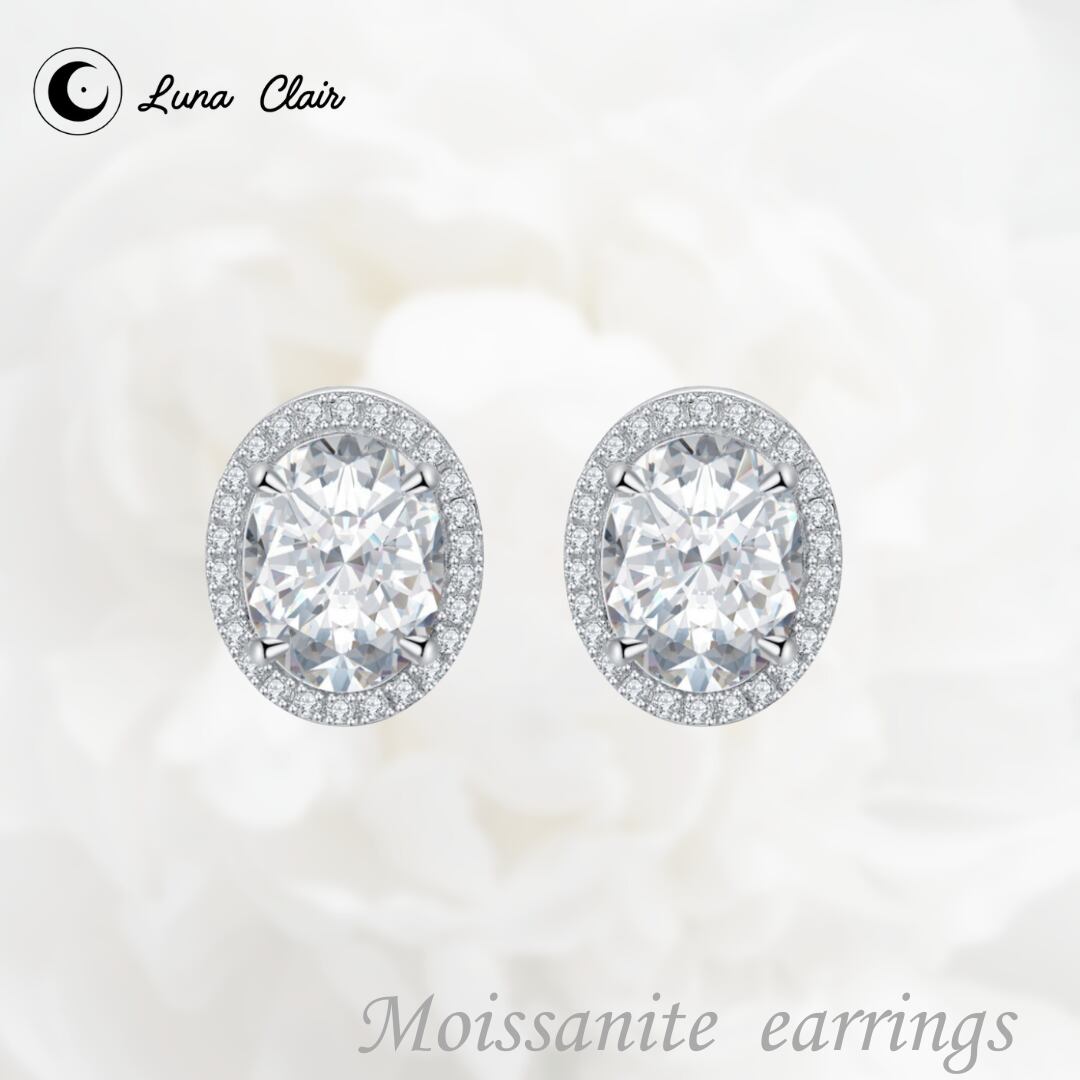 ダイヤモンドに敵対する輝きを持つ「モアサナイト」を贅沢に使用したオーバルカットピアス。