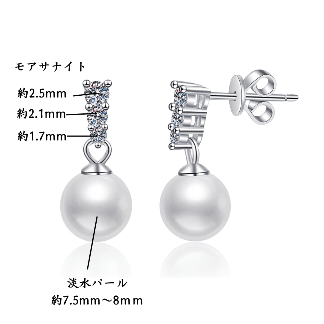 3ストーンモアサナイトパールピアス|シルバー925 レディース アクセサリー モアッサナイト 真珠 フォーマル ジュエリー