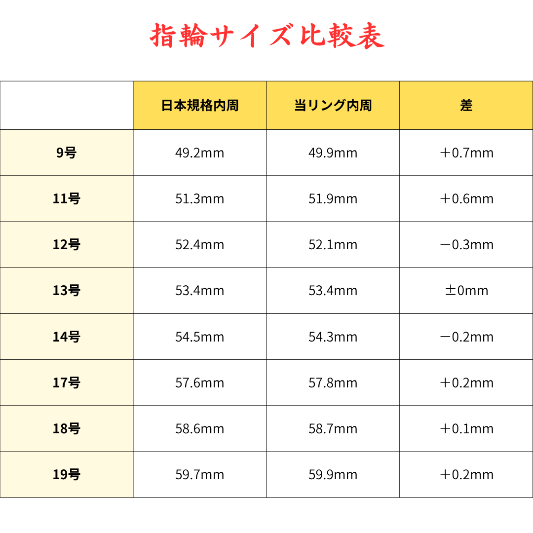 ※リングサイズは若干の誤差(0.1mm~0.7mm程度)が生じる場合がございます。