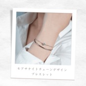 モアサナイトの煌めきと、上品なチェーンデザインが織りなす、日常に溶け込むジュエリー。オフィスでもカフェでも、手元を美しく演出します。