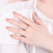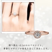 0.3カラットの上質なモアサナイトを使用し、ダイヤモンドのような強い輝きを放つ贅沢な一粒リング。記念日や特別な日を彩るのにぴったりの存在感です。
