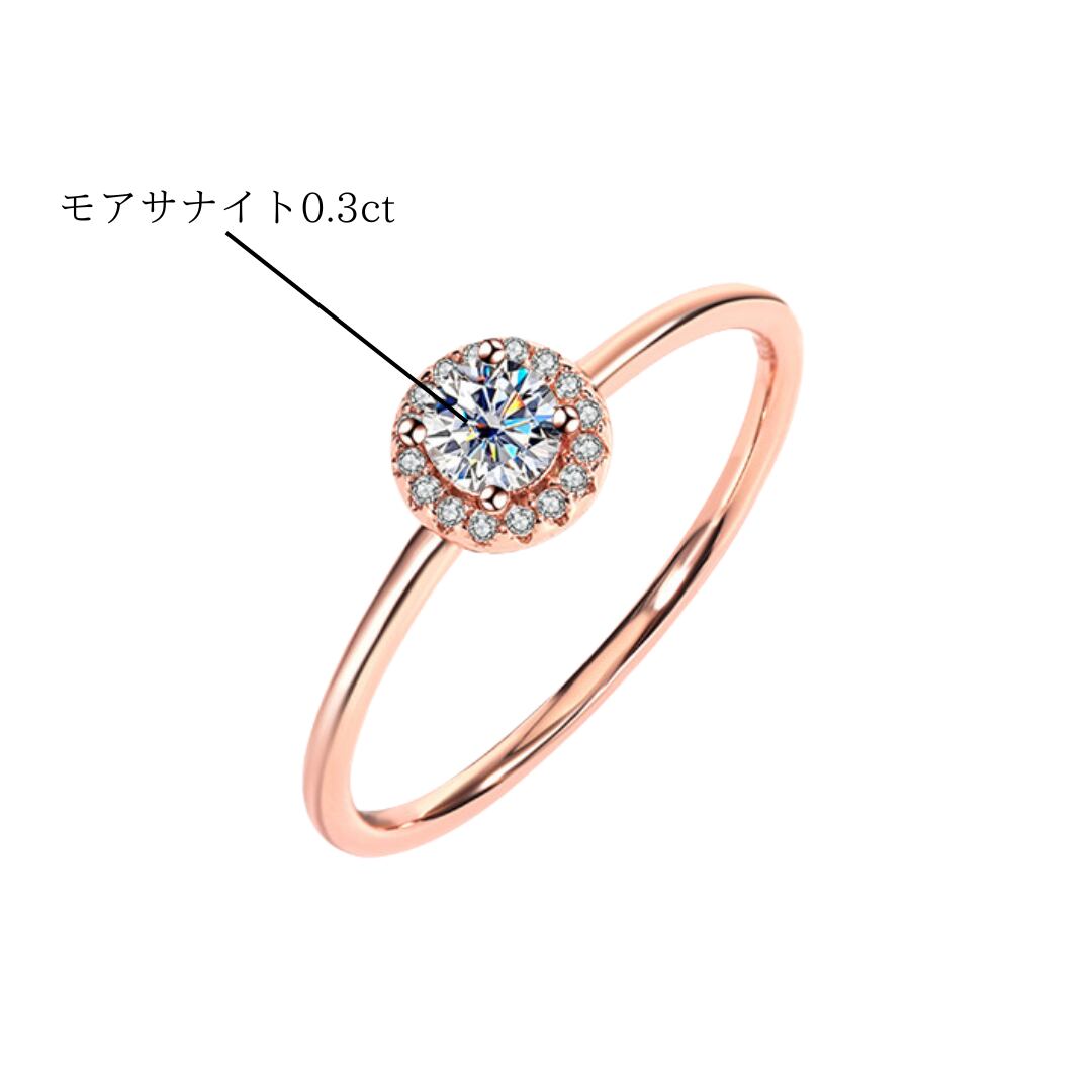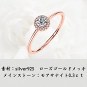 【ローズゴールド】モアサナイトヘイローデザイン0.3ctリング|シルバー925 指輪 レディース アクセサリー プレゼント モアッサナイト