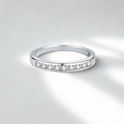 9粒のモアサナイトが一列に並び、指先に清楚で洗練された印象をもたらします。