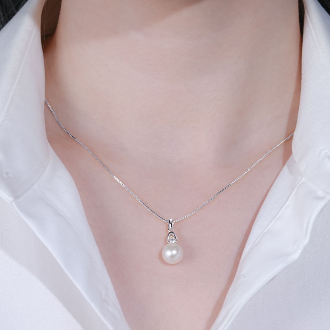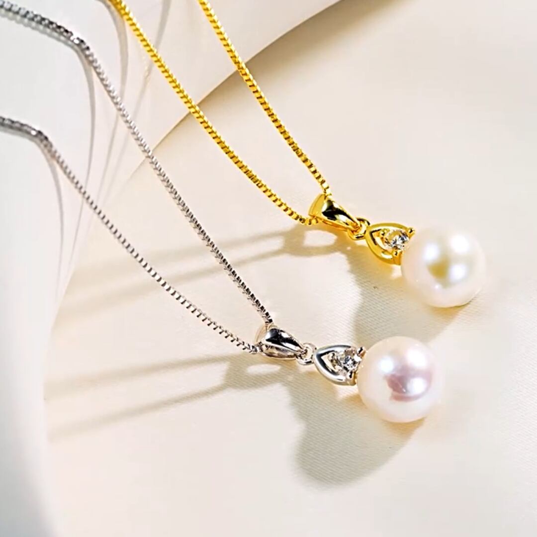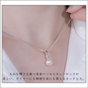 一粒の淡水パールとキュービックジルコニアが織りなす繊細な輝きが、胸元に上品な印象を与えます。