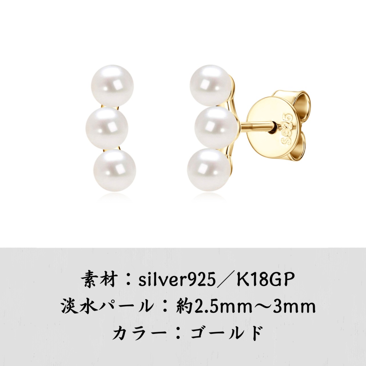 【ゴールド】トリプルラインパールピアス|真珠 シルバー925 レディース アクセサリー プレゼント ギフト 母の日 妻 彼女