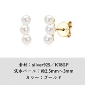 3粒の淡水パールが縦に美しく並び、耳元に上品で清楚な印象を与えます。