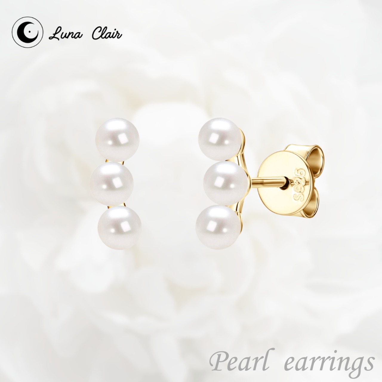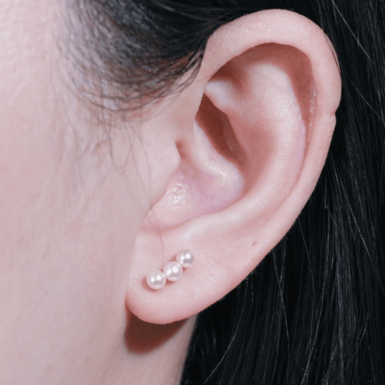 3粒のパールが直線的に並ぶデザインは、耳にぴったりと沿い、フェイスラインをすっきり見せる効果も。小粒ながらしっかりと存在感を放ち、上品な華やかさをプラスします。