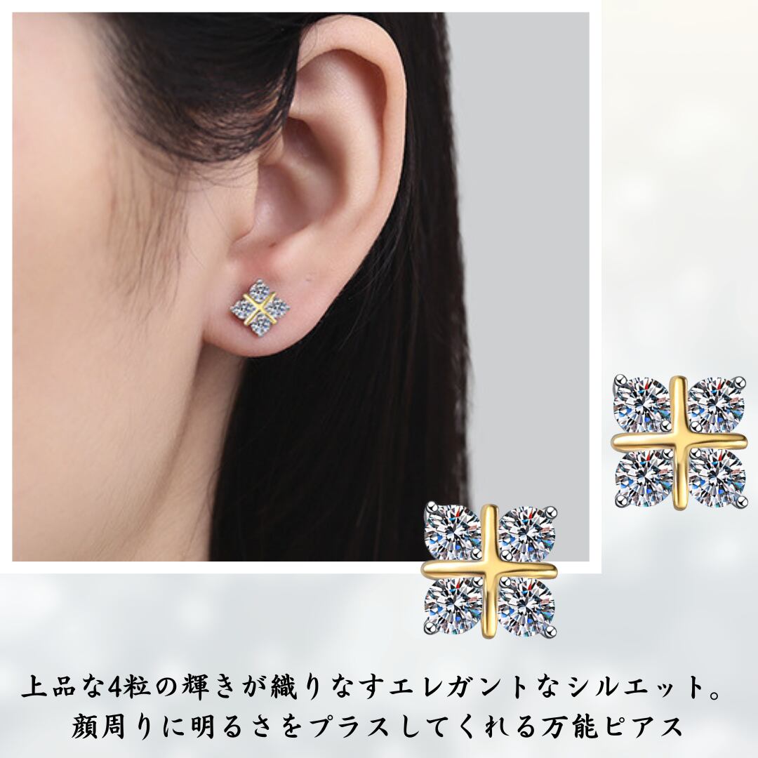 モアサナイト0.1ct×4石(片耳)、両耳合計0.8ct
