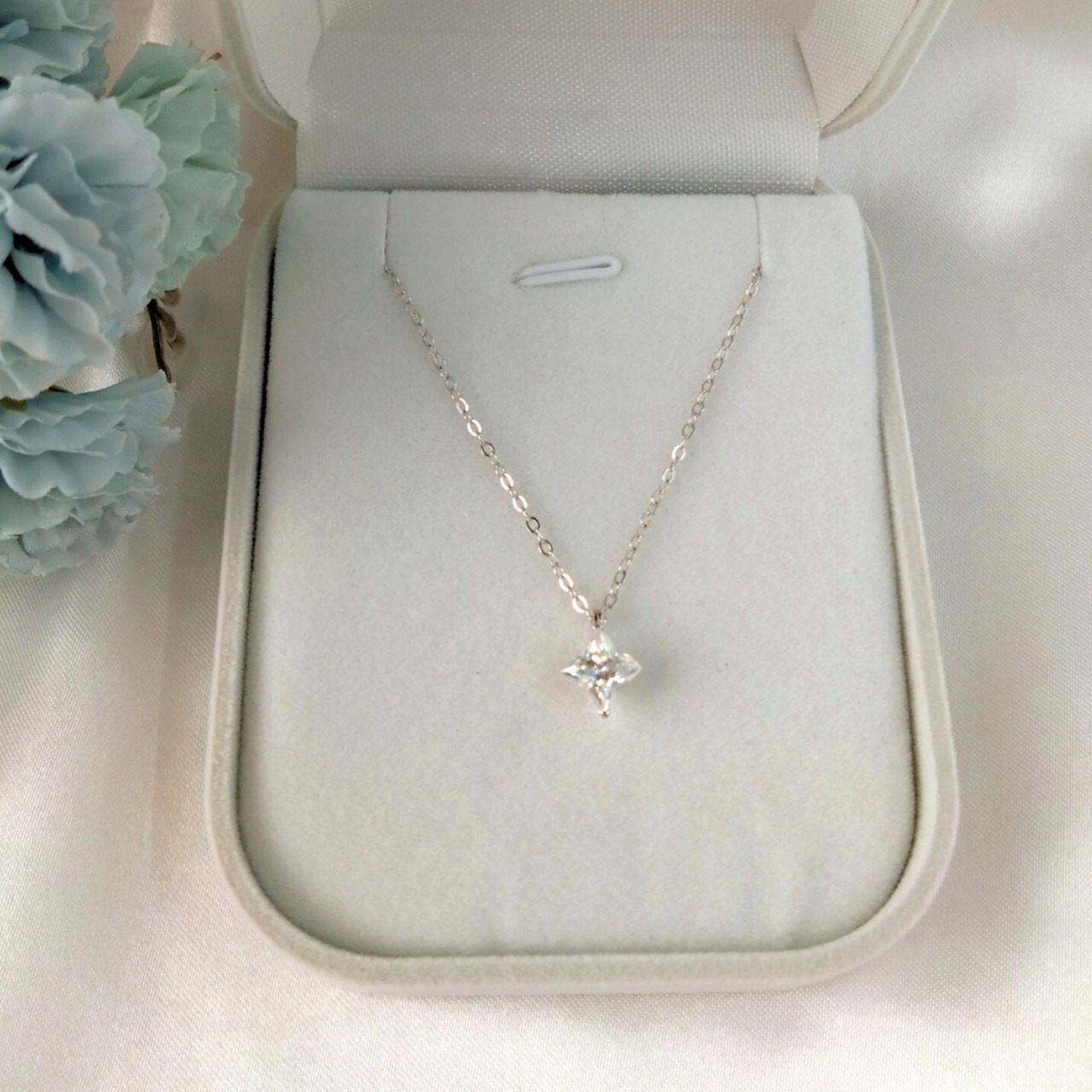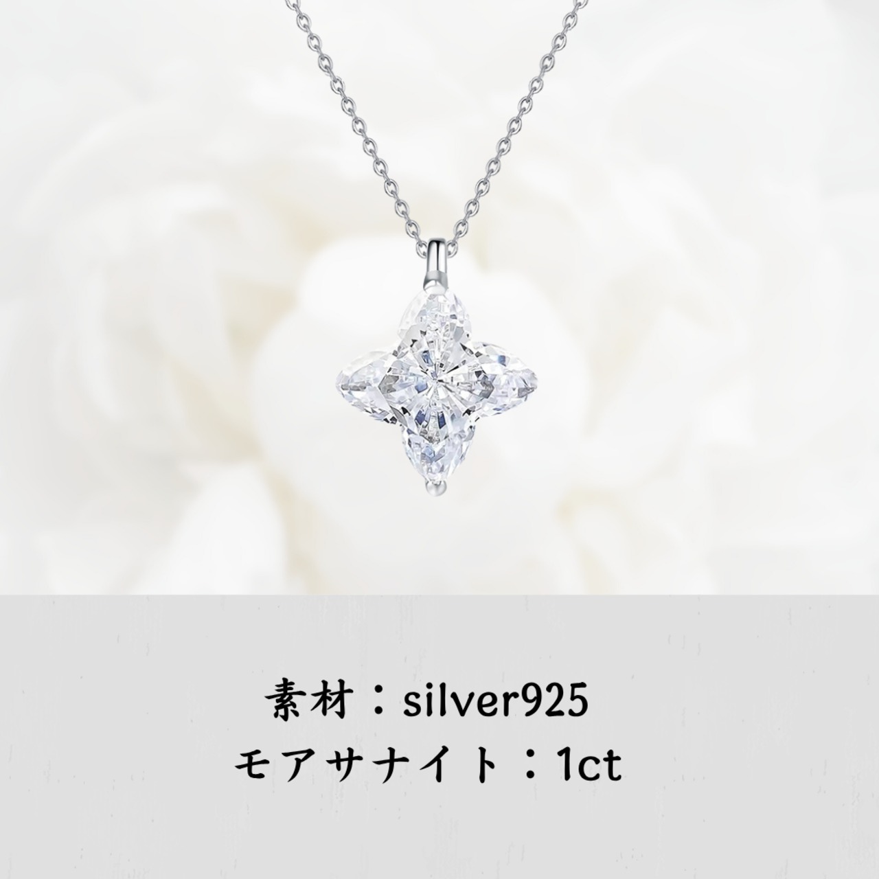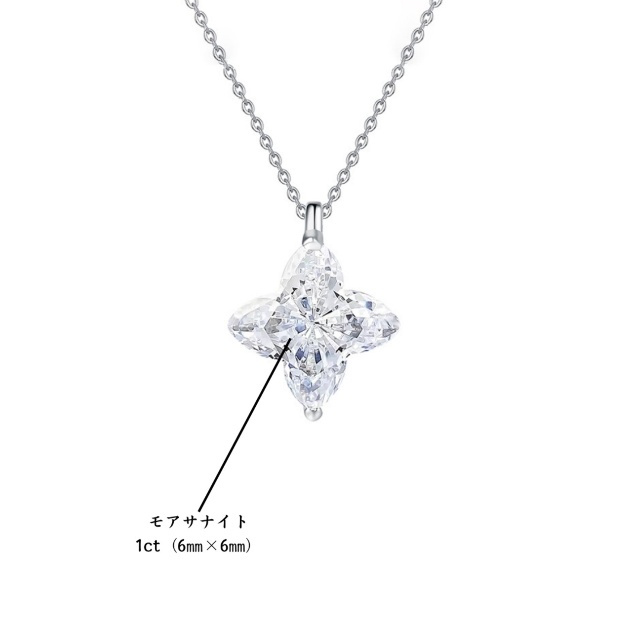 1カラットのモアサナイトを使用したクロススターネックレスは、ダイヤモンドに匹敵する煌めきを放ちます。