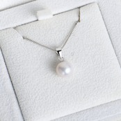 光沢の美しい淡水パールを一粒あしらった、シンプルで洗練されたネックレスです。