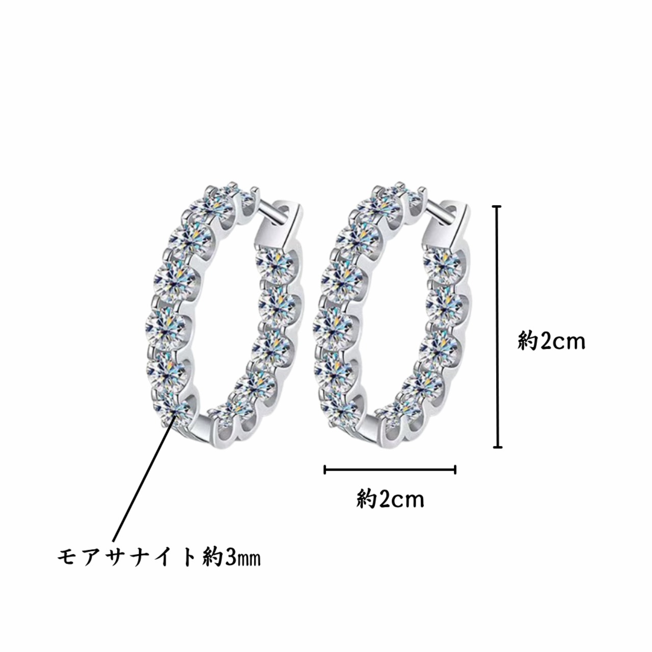 モアサナイト:3㎜×13石(片耳)、両耳合計26石