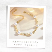【ゴールド】淡水パールツイストラインブレスレット|シルバー925 レディース アクセサリー プレゼント ギフト 妻 彼女 母の日 ホワイトデー 記念日