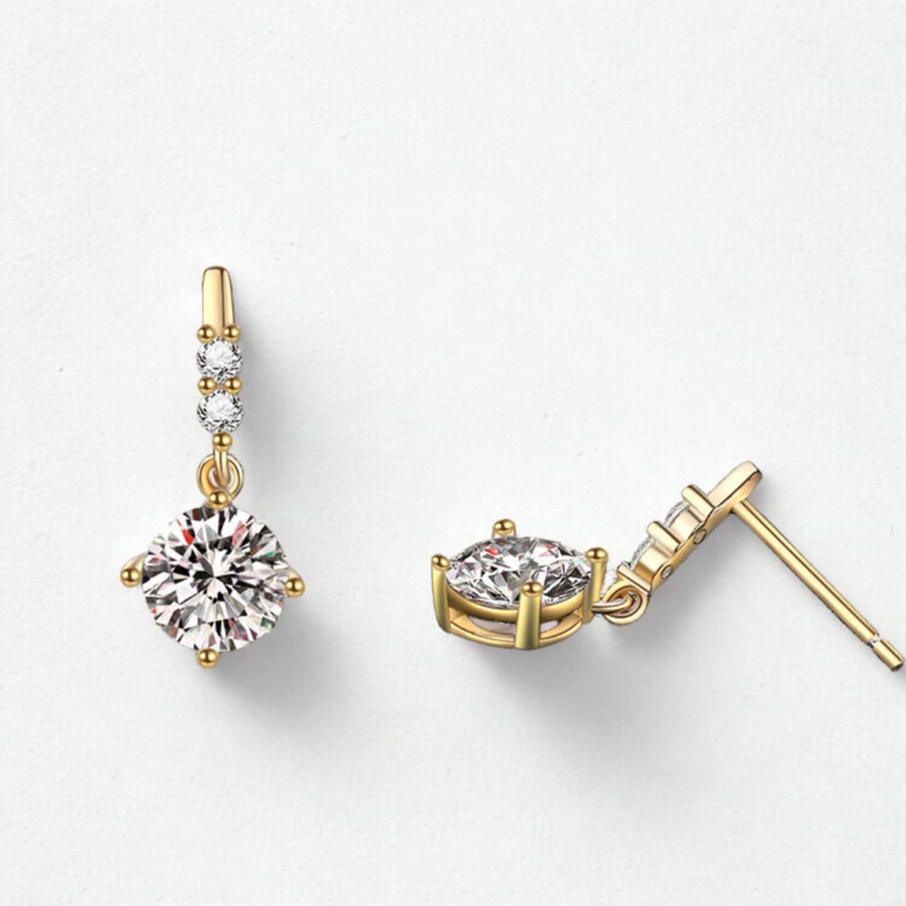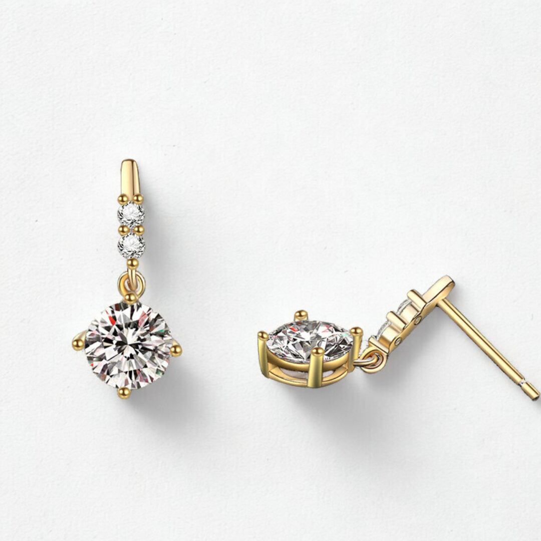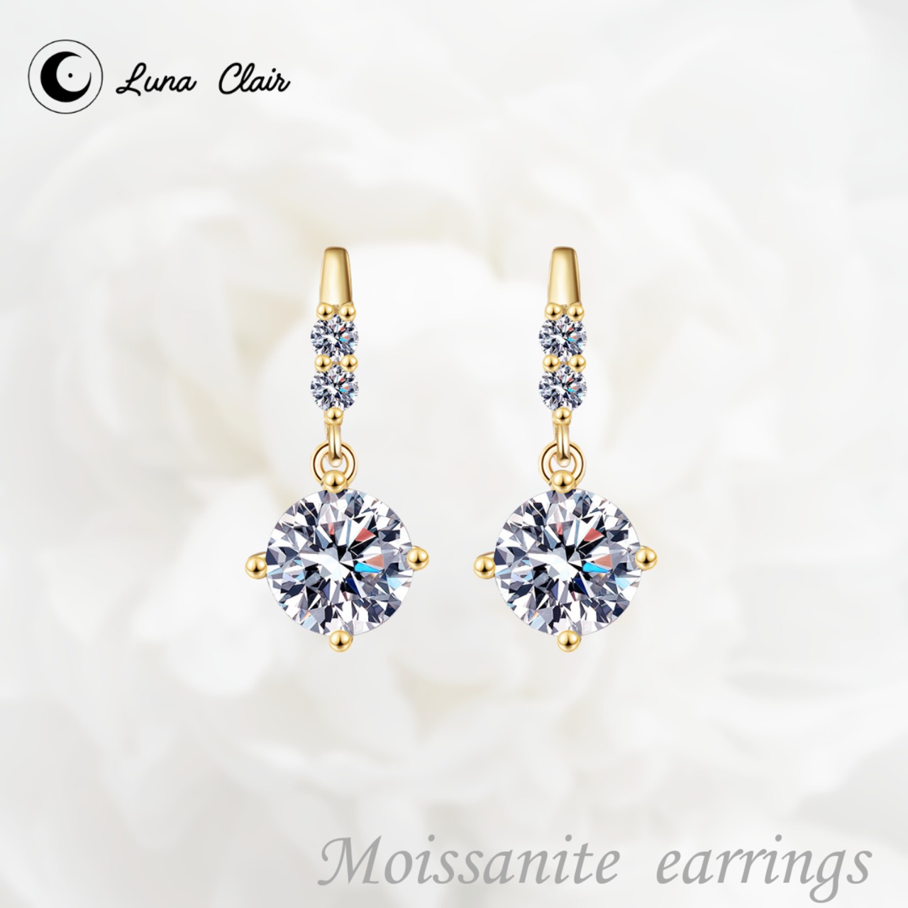 本物のダイヤモンドにも劣らない透明感ときらめきを放つ、1カラットの高品質モアサナイトを使用したスタッドピアス。