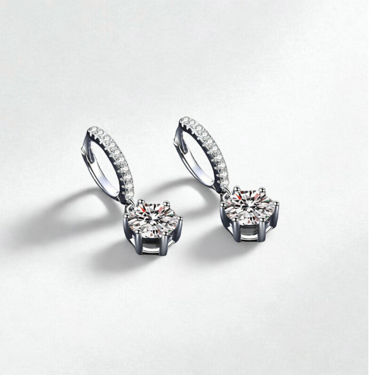 贅沢にカットされた1ctのモアサナイトが、動くたびにまばゆく光を放ちます。