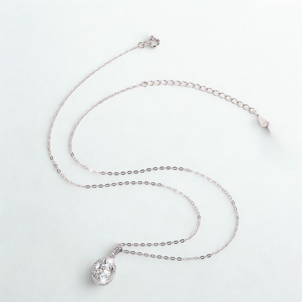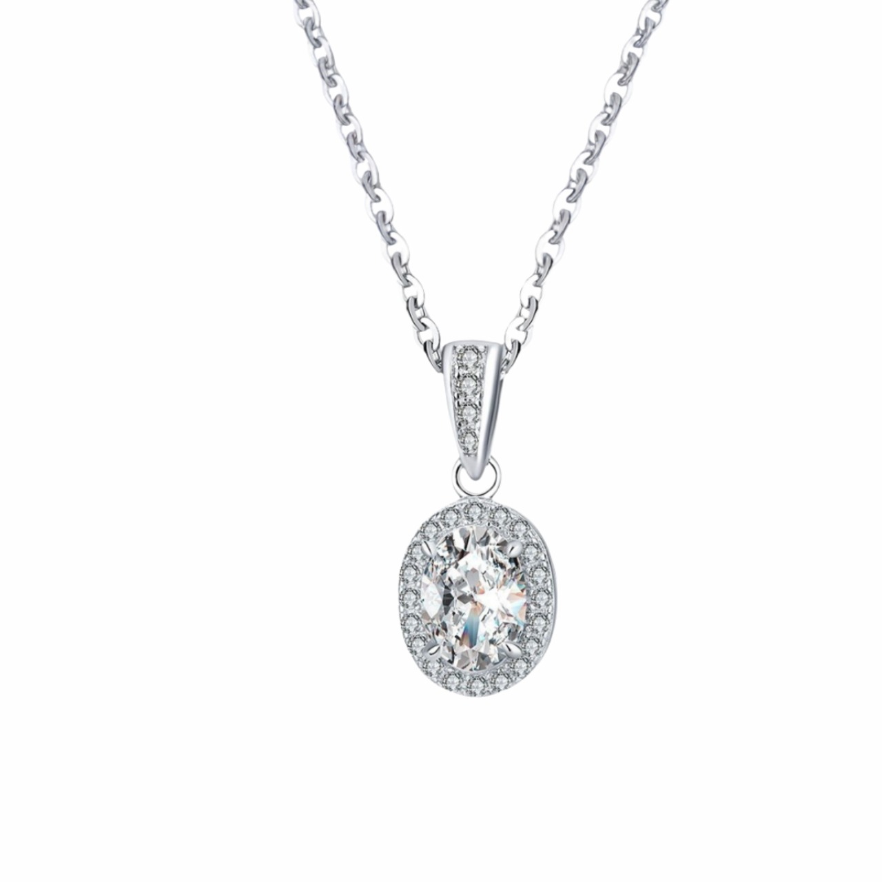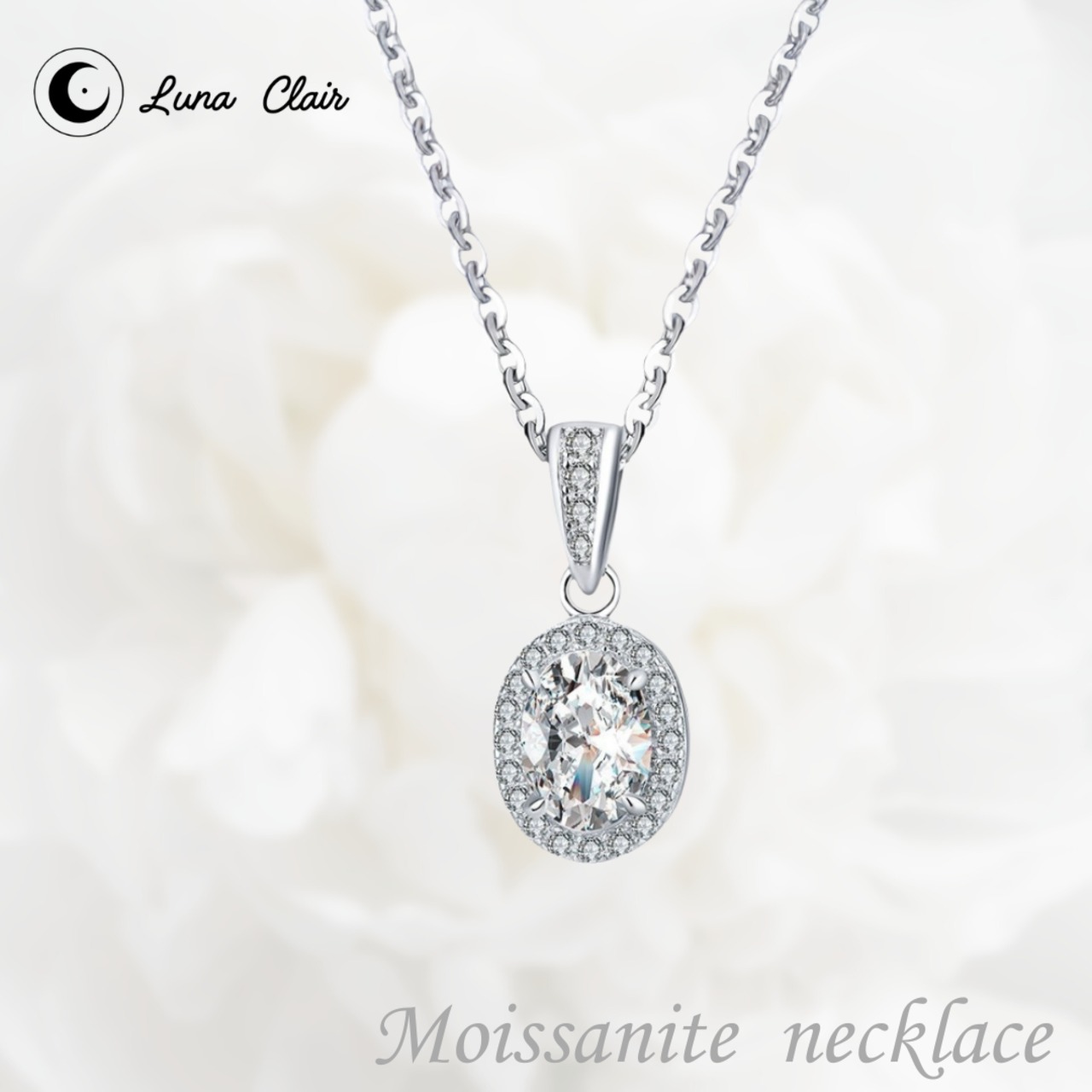 1カラットのモアサナイトを贅沢に使用したオーバルカットネックレス。