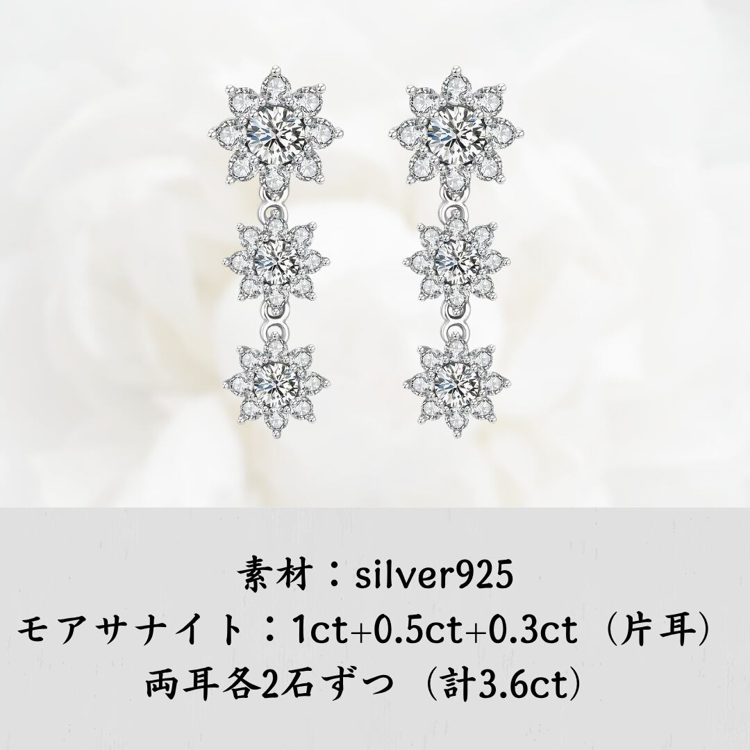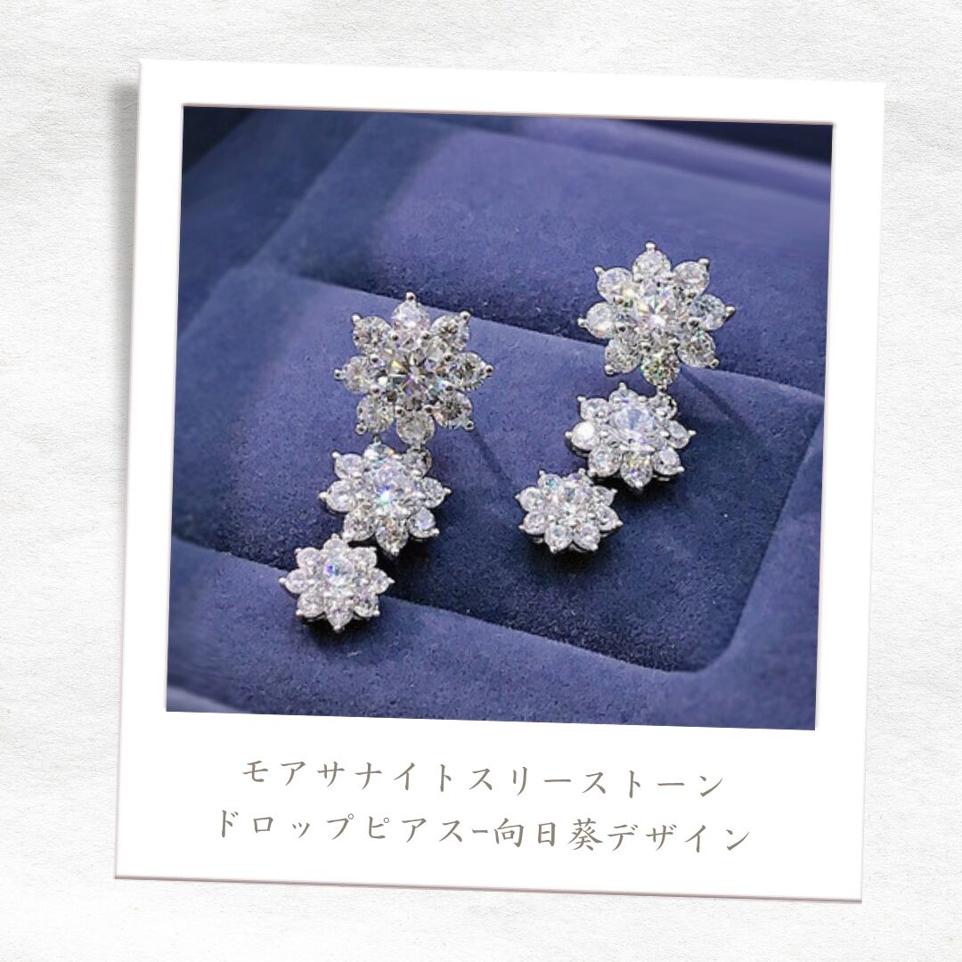 モアサナイトスリーストーンドロップピアスー向日葵デザイン|シルバー925 レディース アクセサリー プレゼント ギフト 妻 彼女 母の日 ホワイデー 記念日 クリスマス