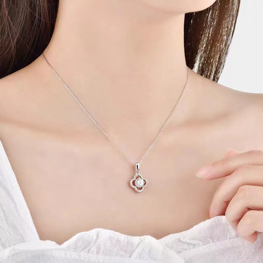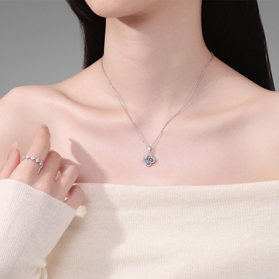 モアサナイト1ctペンダントネックレス-クローバーデザイン|シルバー925 レディースアクセサリー ジュエリー プレゼント ギフト モアッサナイト