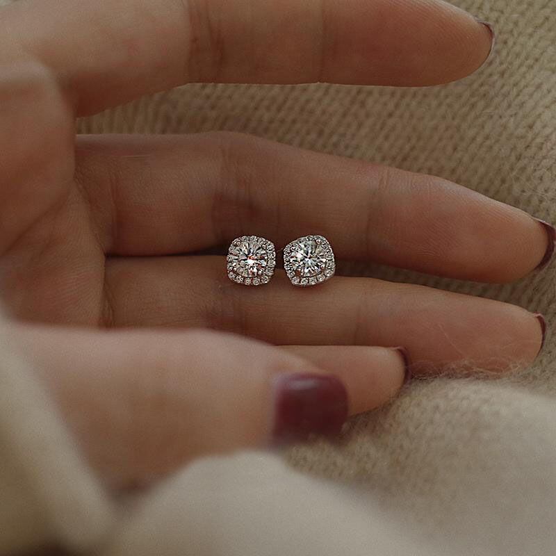 0.5のモアサナイトを贅沢に使用したスクエアピアス。